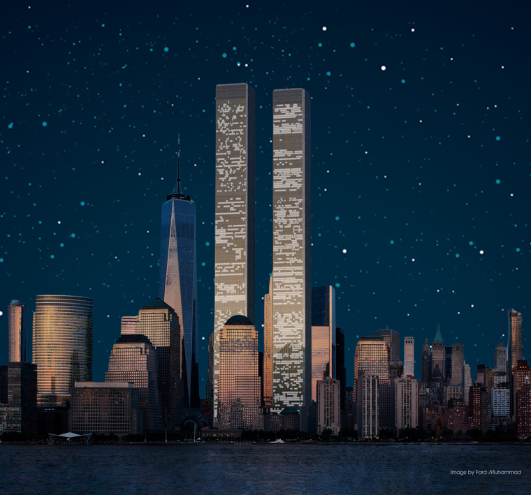 The Twin Towers glittered with the magic of an optimistic time when we put the first man on the moon and faced our challenges head-on. RE-pairing the skyline would reverse the world’s downward spiral.